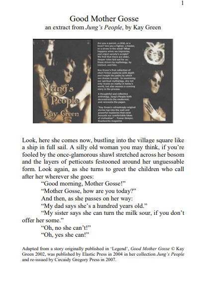 I wrote Good Mother Gosse just before the turn of the century. It was published in a (slightly dubious) collection of early works by me called Jung’s People.