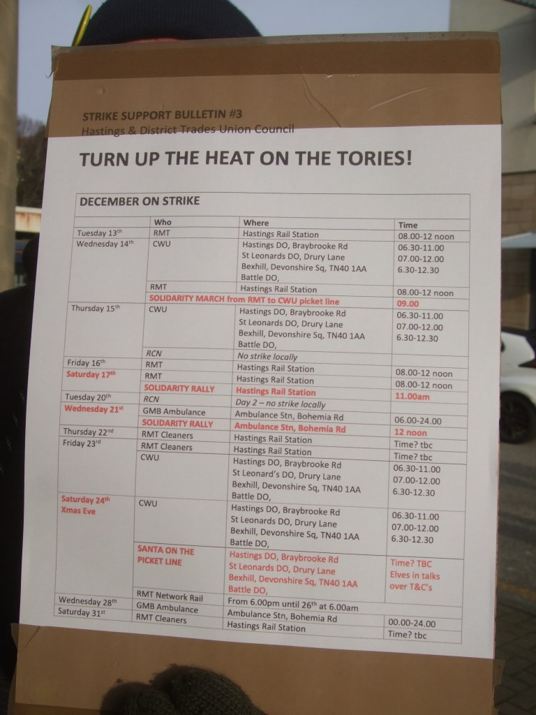 Here’s some information about strike actions in and around Hastings in the next few weeks. See you on a picket line somewhere soon…!