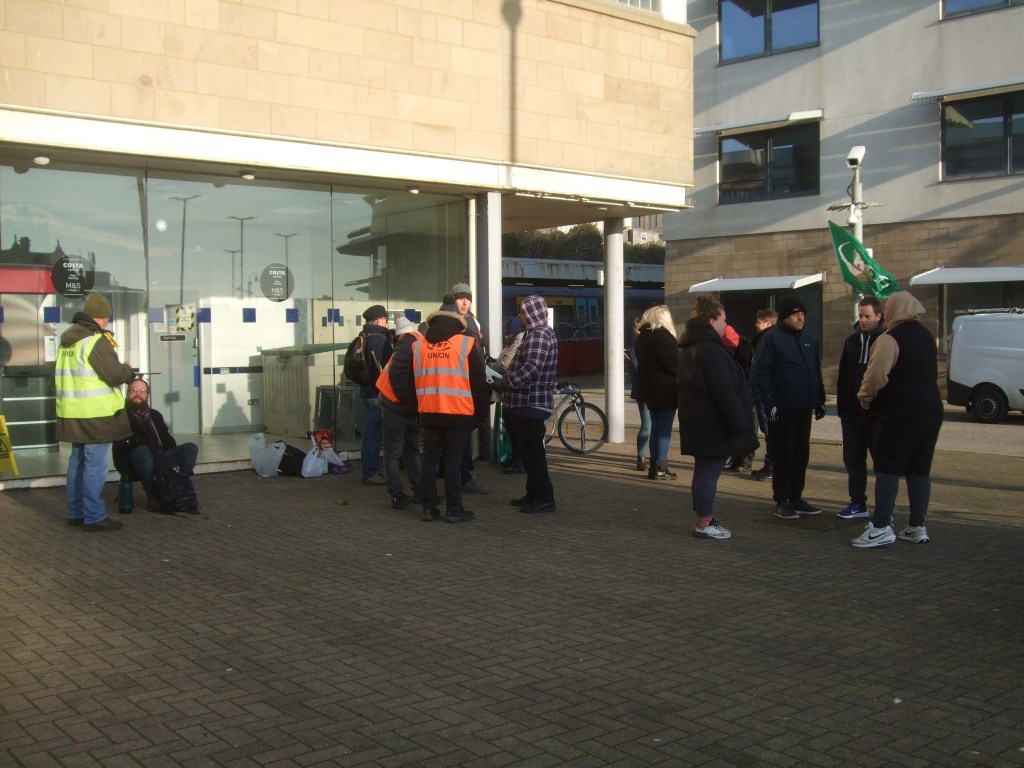 If you want to do more – well, if it’s a cold day, offer to buy someone a coffee. Maybe you could take a photo to put on your social media pages, if you have them, or ask if they have leaflets or posters you could share show your colleagues and friends. If you have enough in your pocket this week, put a few pounds in the Strike Fund.