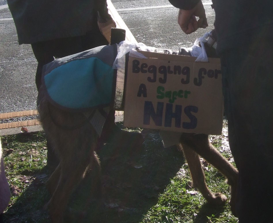 We went to a TUC rally in support of the RCN at our local hospital this morning. Yesterday, I was at a hospital a long way away (because our NHS services are stretched out all over the region, now). I sat watching a tired nurse, trying to hold onto too many pieces of (metaphorical) string, go the extra mile for Someone. So often now, you can see they are only just holding it together, and still they go beyond the call of duty, and still the government fails to look after them properly. The business class opportunists we have for politicians are doing this ON PURPOSE so they can persuade us their business-friendly “reforms” are what the NHS needs. I am spitting mad.