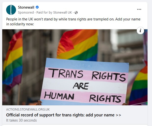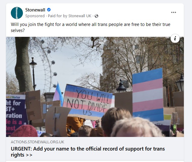 If any of this has left you confused (and my goodness, was there ever a situation so full of potential confusion) please return to the top of this article and think about what a stroke of genius it was by the gender industry to appropriate trusted groups like Stonewall (who, until 1998 or so, were an LGB support organization). Please note how trans rights protests now tend to carry banners saying “you will not divide us”.