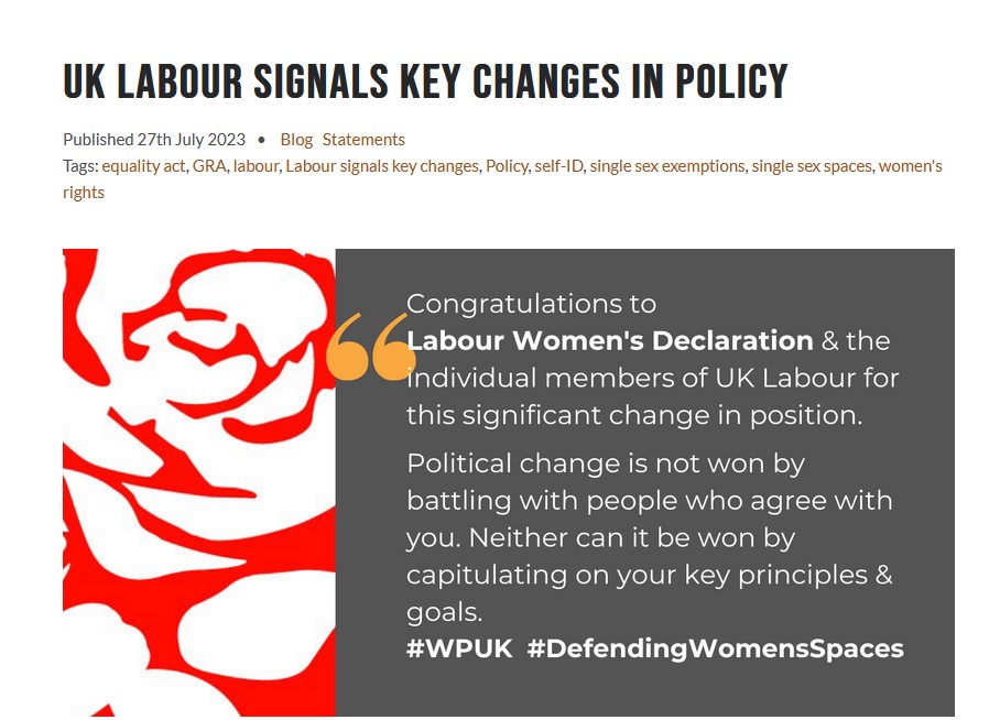 It’s a win. It’s a brilliant win. Labour have endorsed women’s legal rights. I’m sure the vast majority of the angry, bruised women out there are as proud of Woman’s Place, the Labour Women’s Declaration team and all the other groups as I am…