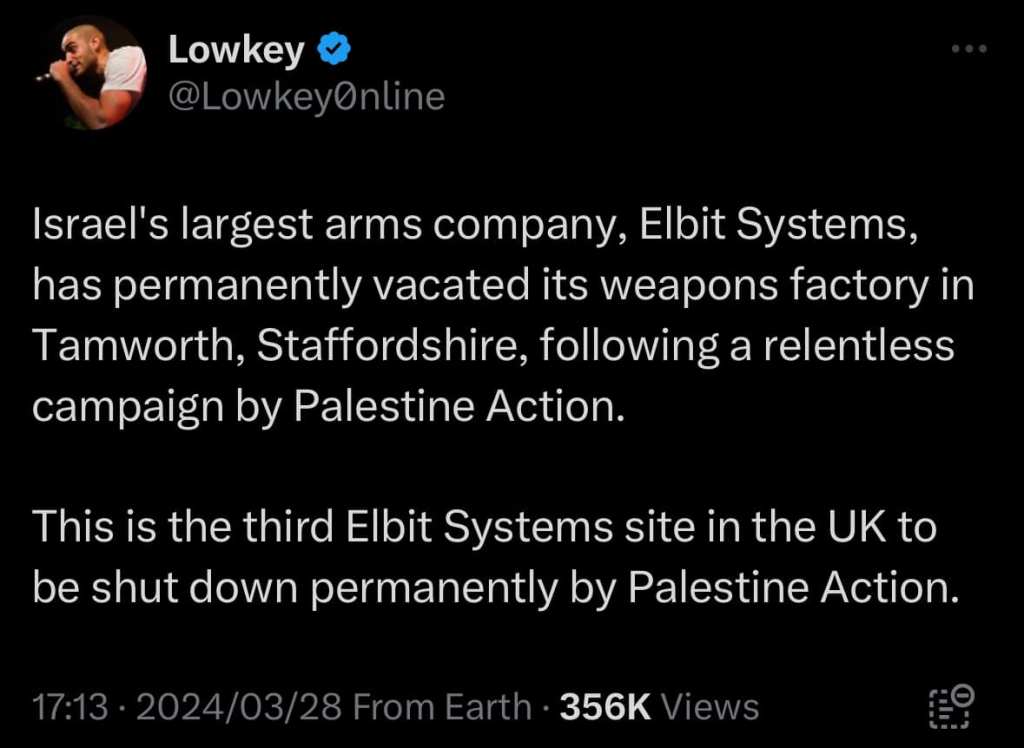Palestine action have successfully shut down two Elbit arms factories, and caused the company to lose a substantial contract. Companies are all about profit – they do change their ways, if the public successfully interfere in their profiteering. Oh as you were – it’s three now!