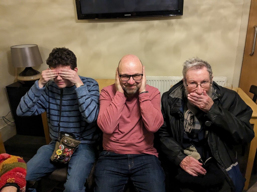 The ‘three wise monkeys’ pic below celebrates the huge audience for Feinstein’s talk, which ranged in age from 16 to 95.