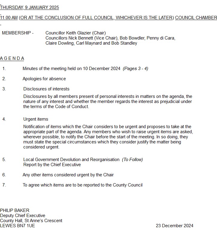 I have to say I felt completely blind-sided, and don’t feel much better now. I heard about it between Christmas and New Year (someone mentioned it in an email about something else) and ESCC will be making decisions on 9th January. Clearly, right wing councillors will be quite happy because it means right-wing councillors will be deciding our future. Labour councillors will say it’s okay because it’s a Starmer plan, so they’ll have to like it – that’s how the Labour Party works these days, and Greens are ‘looking forward to working with’ their pals in Lewes, Eastbourne and Timbuctu, probably.