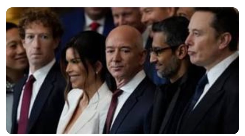 Odd, I thought, that the names in the headlines don’t include Apple’s Tim Cook, and Google’s Sundar Pichai. One might say ‘phew, the real rulers of the world have come together to help steer the madman’… Or one might remember the revolving door that existed between Google and the White House in the days after “9/11”, when the “war on terror” made everyone stand out of the way of the expert information-gatherers as they searched the world for danger.