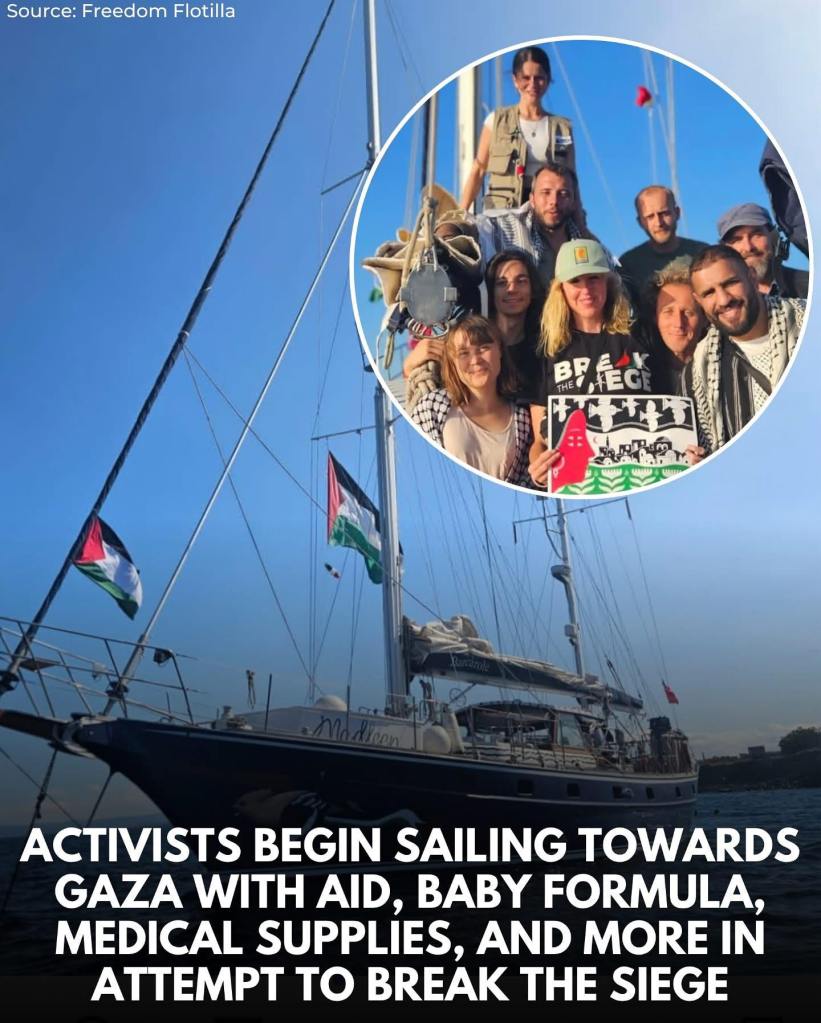 …but this is huge. Now, everyone is watching. If Israel attacks the Madleen, it will be the most widely witnessed crime ever and what’s more, since last month’s attack, politicians in Europe and the US have been progressively losing their nerve. We have held out, and they are beginning to back down. Just last week, the RAF in Cyprus, under the command of the UK’s Keir Starmer and David Lammy, finally halted their participation in Israel’s genocidal actions in Gaza.