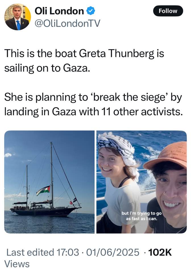 Now, we know the UK forces are there. We know that, if Israel attempts to attack the Madleen, the UK and the US have plenty of military hardware and people in the Med – they could help — they could protect the Madleen — or they could sit tight and exponentially increase the guilt on their heads.