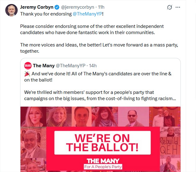 But team Sultana were determined to keep those endorsements for their own candidates coming, to ‘dominate’ the lists, and keep everyone else off. That’s why, despite the questionable wisdom of having slates in the first place, once it was done, we needed ‘The Many’ slate in defence. The Many slate are not faceless, back office bureaucrats. They are good, reliable activists we remember from the Labour Party years. They put together a team focused on calling out to the original 850 000 and getting Your Party back on track. Corbyn was invited to join them (as opposed being put on the slate against his will and having to demand his removal, as happened with ‘the Grassroots Left slate’).