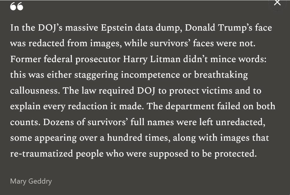Frankly, I’m shocked at the number of feminists who are shocked by the Epstein revelations. What was there that we didn’t already know? It’s not that all men are bad, it’s really not. Real feminists aren’t engaged in a battle between women (all good) and men (all bad) that’s not how it works. It’s not even that some men are good (actually, lots of men are) — it’s that good men are precarious, because of patriarchy. Every day in every way, our society keeps up the pressure on men to use women, and to excuse themselves — and it never lets up on women who refuse to be used.