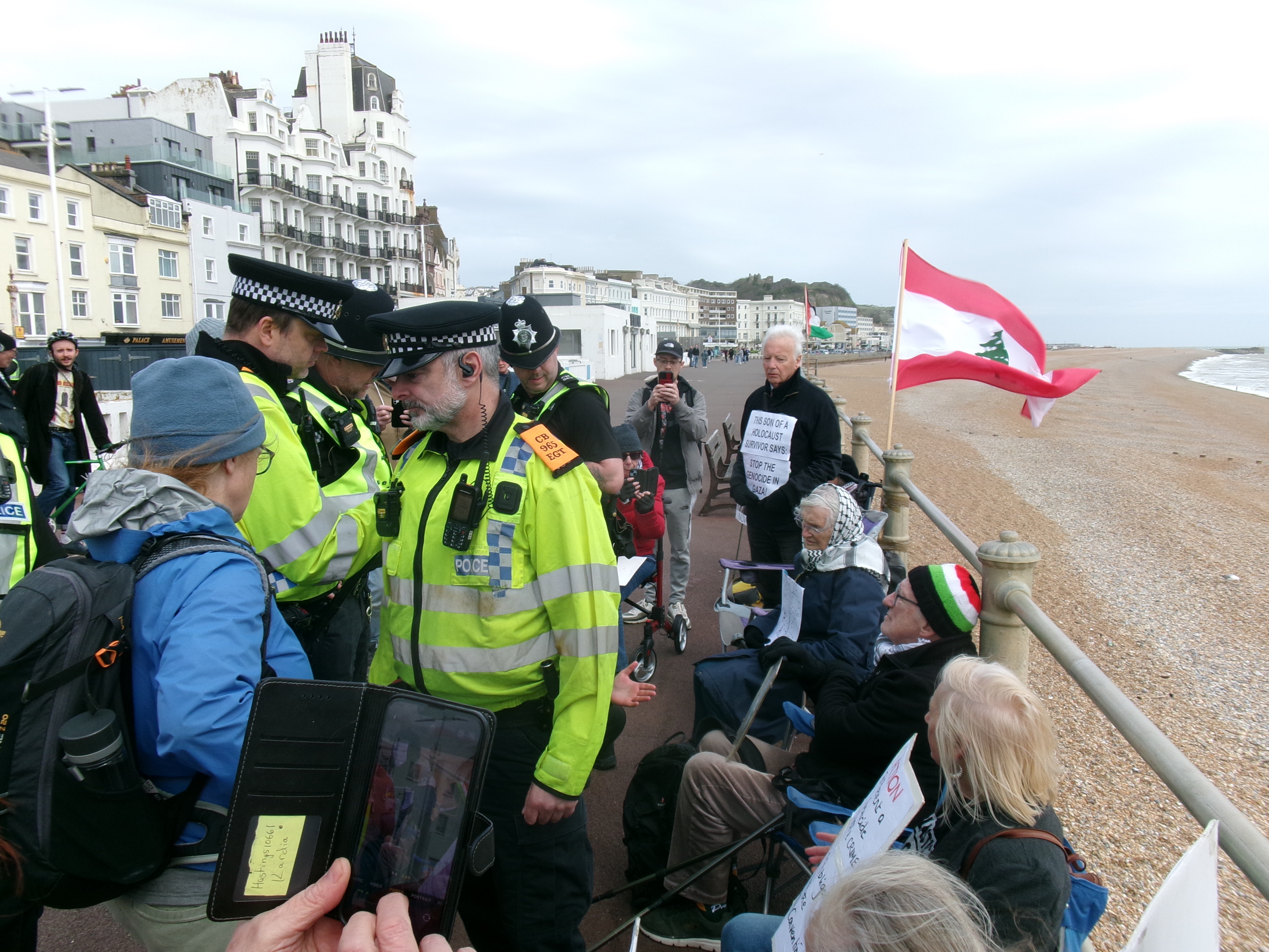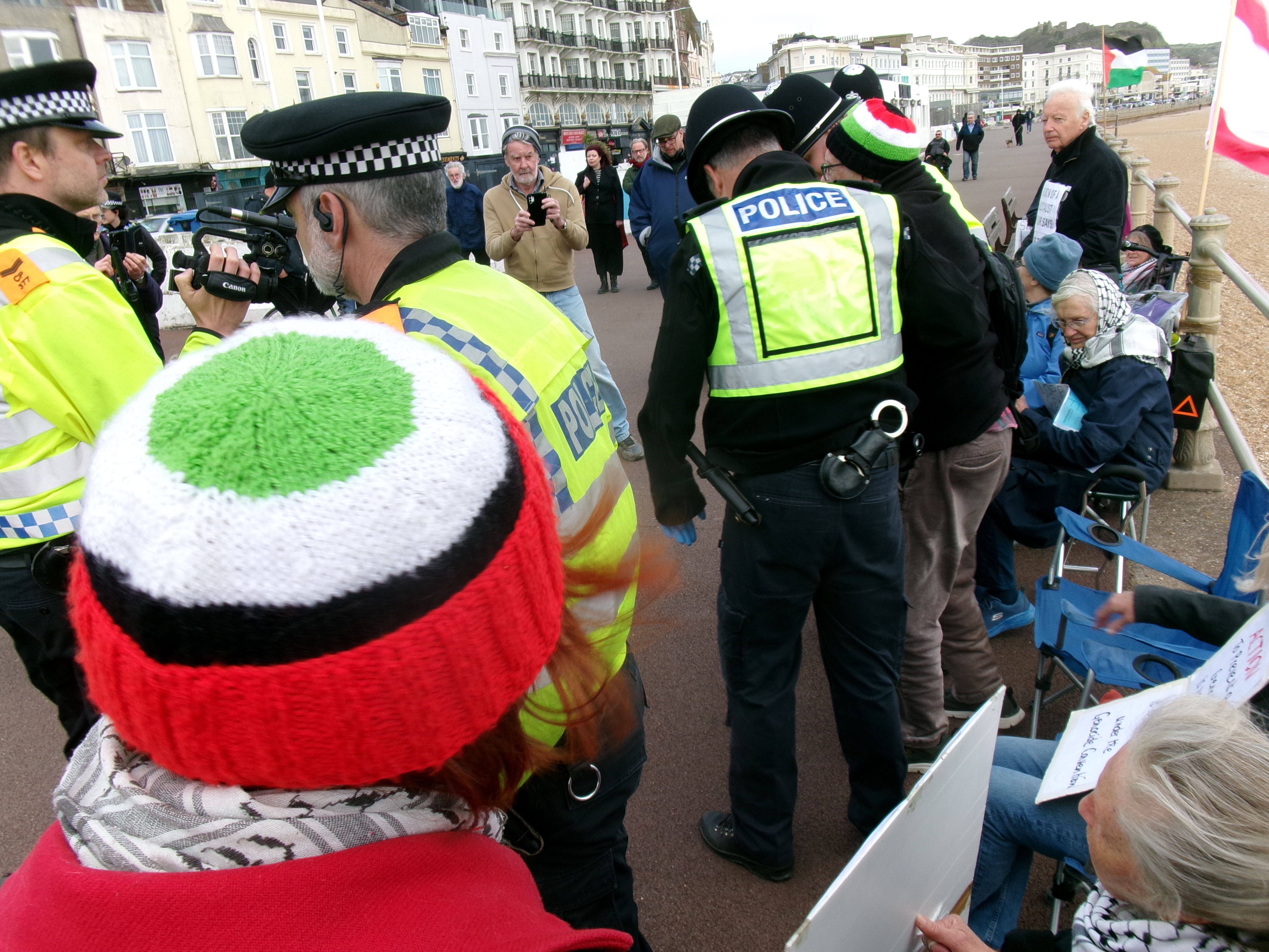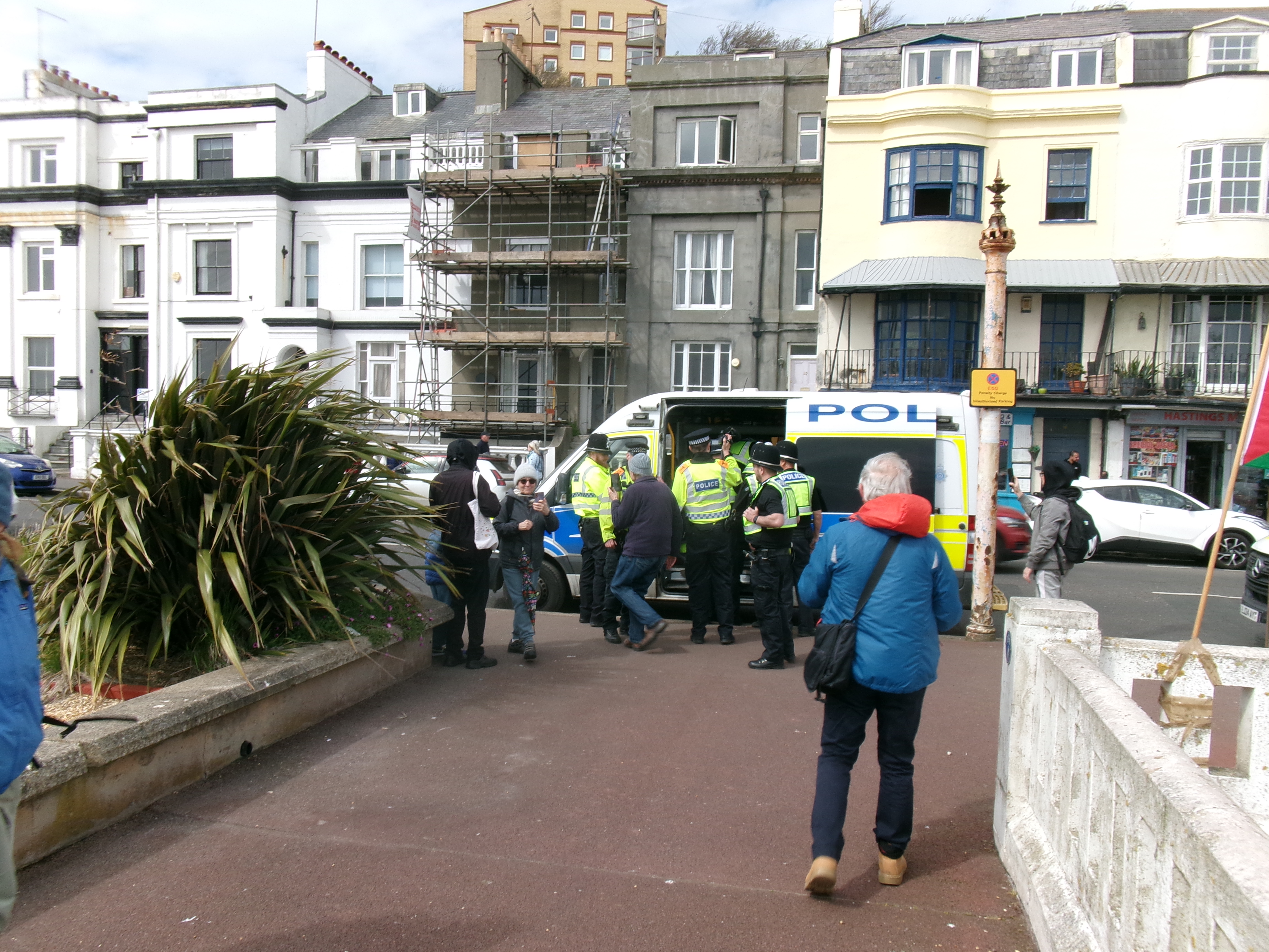 I went for a walk on Hastings prom today. I went because I’ve always believed in supporting citizens’ right to protest and, living as I do in the town of the Hammerblow women, I believed, for most of my life, that our country supports a citizen’s right to stand up against violent crime.