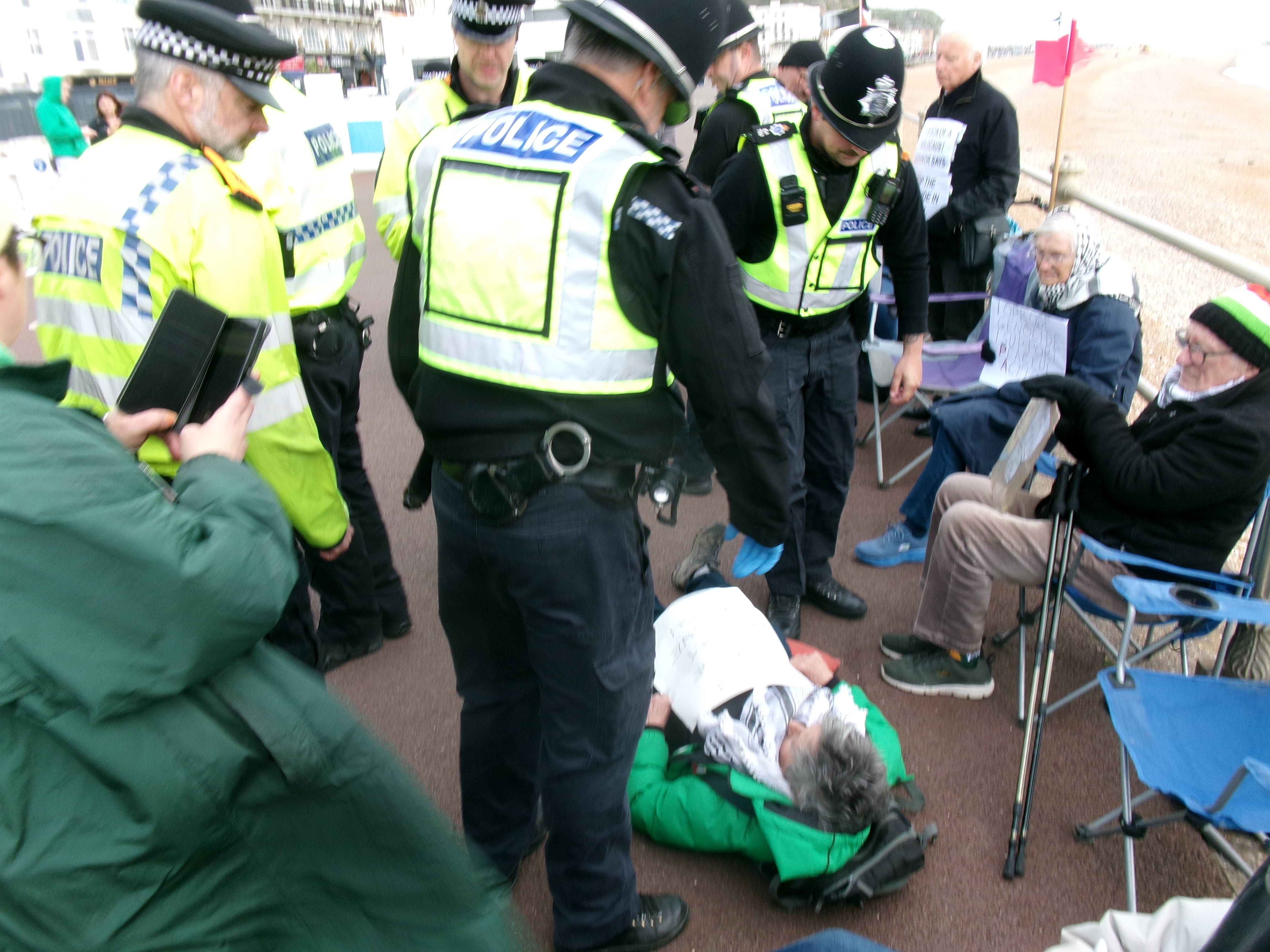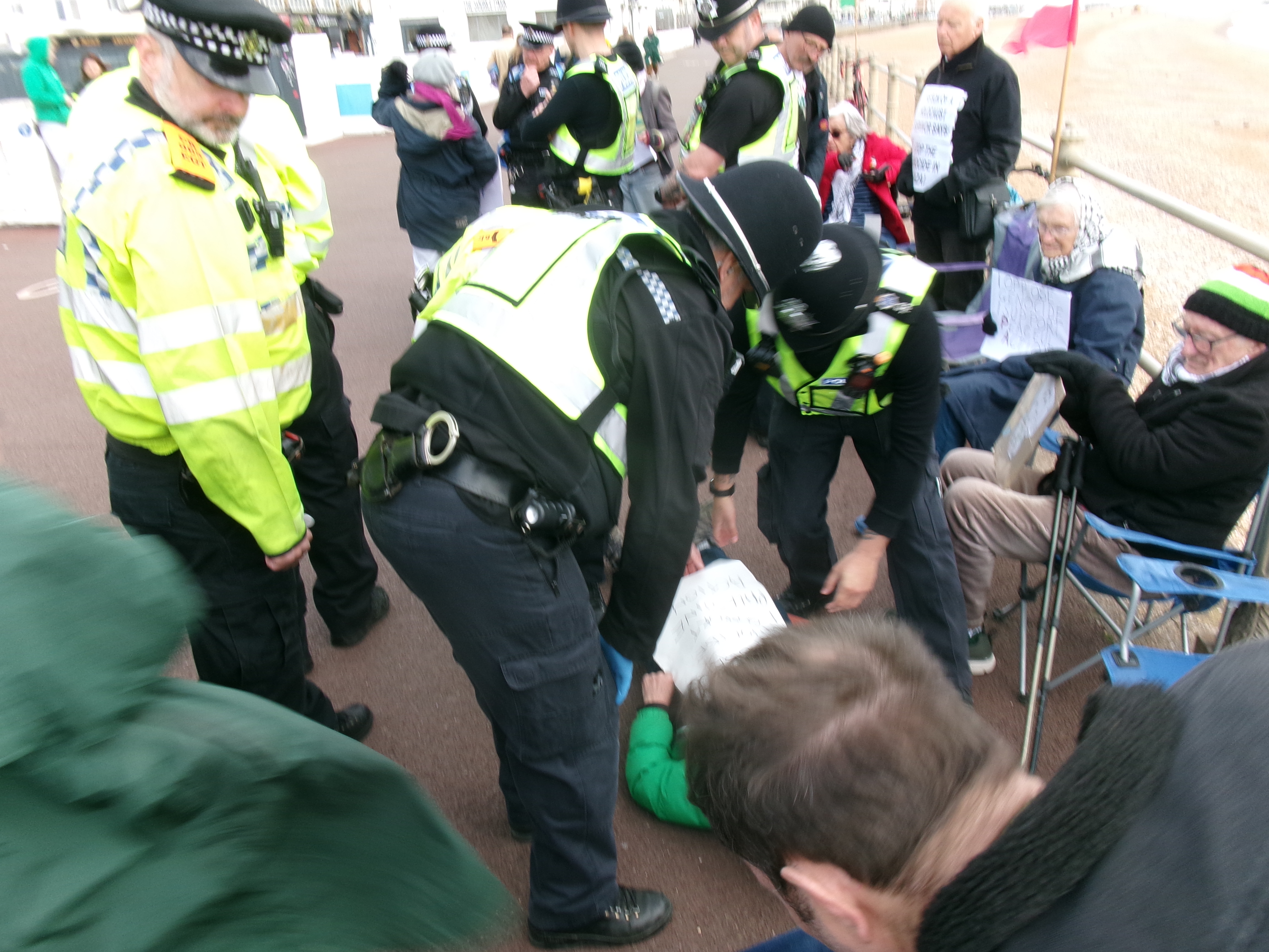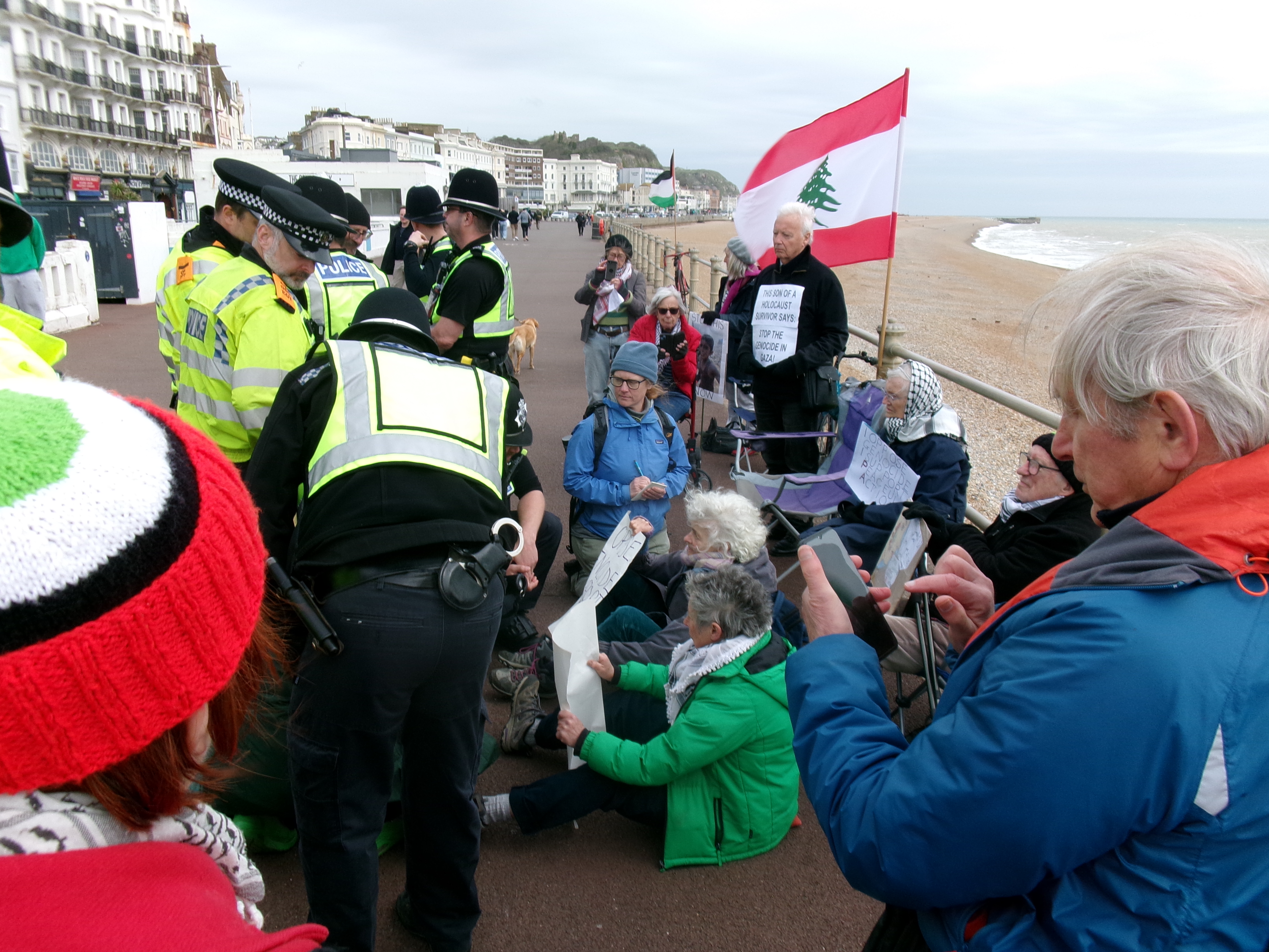 I went for a walk on Hastings prom today. I went because I’ve always believed in supporting citizens’ right to protest and, living as I do in the town of the Hammerblow women, I believed, for most of my life, that our country supports a citizen’s right to stand up against violent crime.