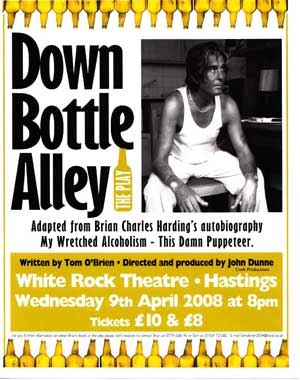 I discovered Brian’s book at our recent book festival in Hastings, where we were fortunate enough to be visited by the London Irish Theatre group who performed DOWN BOTTLE ALLEY, a play by Tom O’Brien, directed by John Dunne, based on the book ‘My Wretched Alcoholism: This damned Puppeteer’ by Brian Charles Harding. They bill this half-hour performance as ‘An important piece of issue theatre about the dangers of street drinking, focusing on the story of Brian who started drinking as a young man to only later become a street drinker with chronic alcohol problems.’